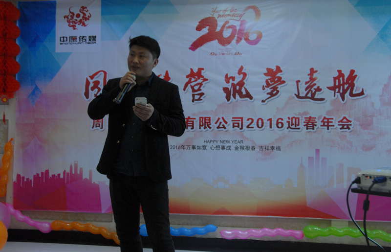 中原傳媒大掌門(mén)廖總致辭,感謝中原傳媒全體員工一年以來(lái)辛勤的付出,推動(dòng)了公司長(zhǎng)足的發(fā)展,廖總為大家總結(jié)2015,暢談2016,目標(biāo)堅(jiān)定,讓大家知道,跟著他走,有肉吃!領(lǐng)導(dǎo)講話飽含深情,催人奮進(jìn),我們必將強(qiáng)力助推2016年工作再上一個(gè)新臺(tái)階!